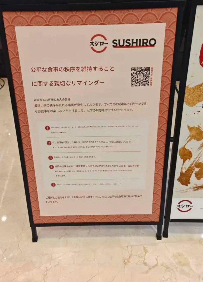 中国のスシロー、整理券転売にブチギレ注意喚起wwwww