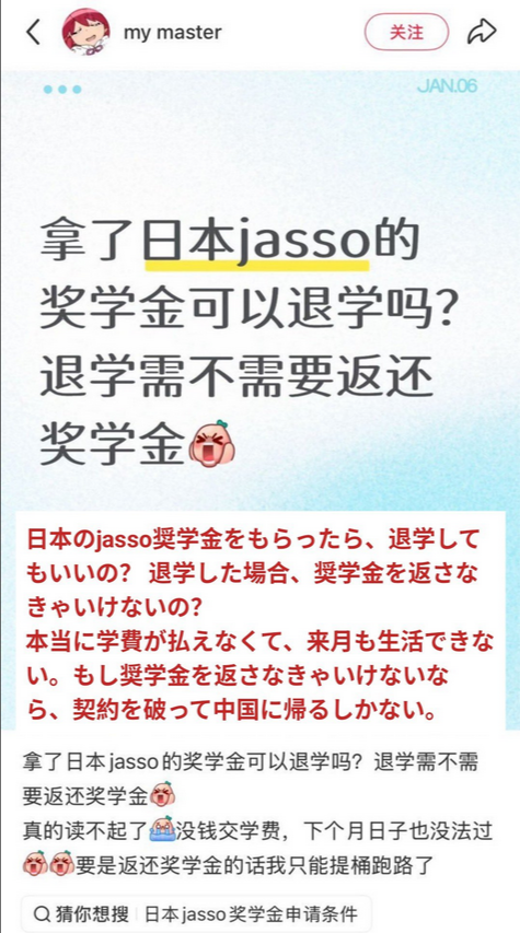 日本学生支援機構(JASSO)の奨学金を受給している中国人留学生が、経済的困窮を理由に退学を検討しているとして、SNS上で波紋が広がっている。