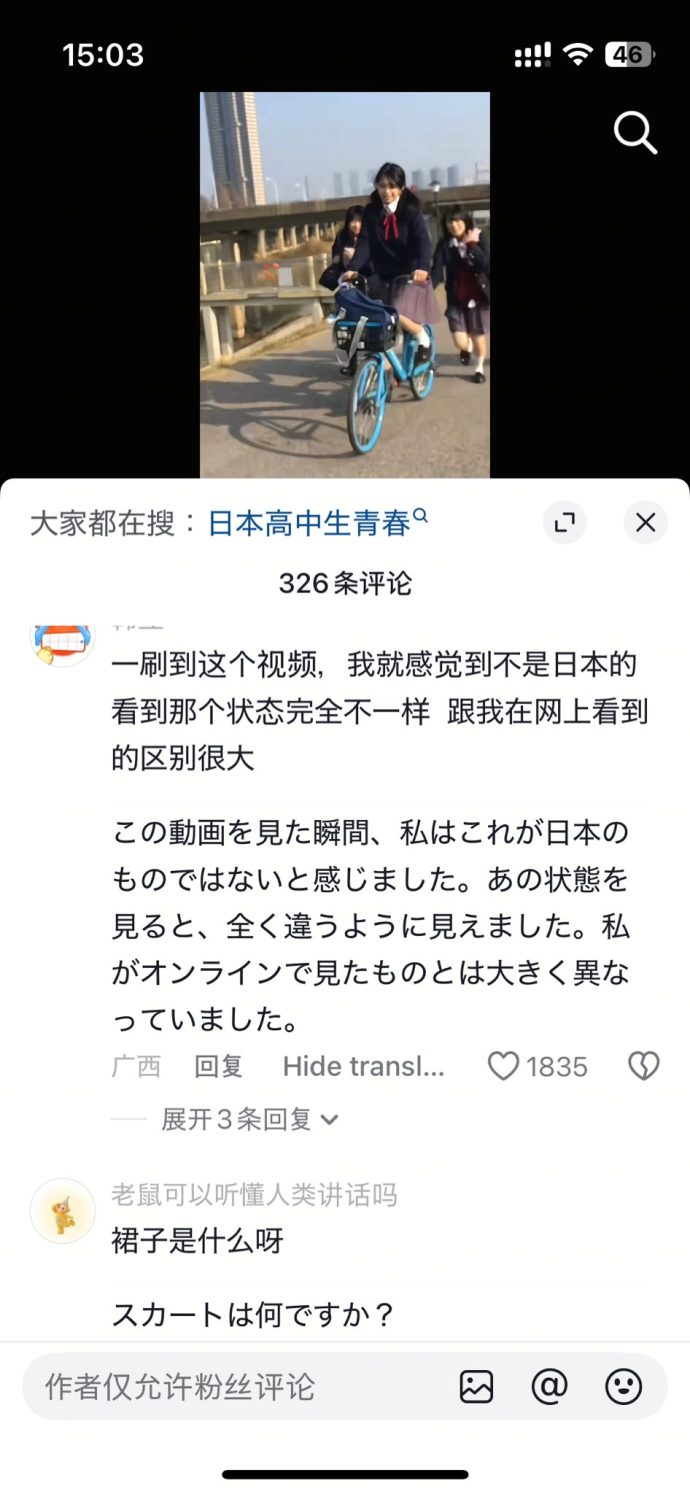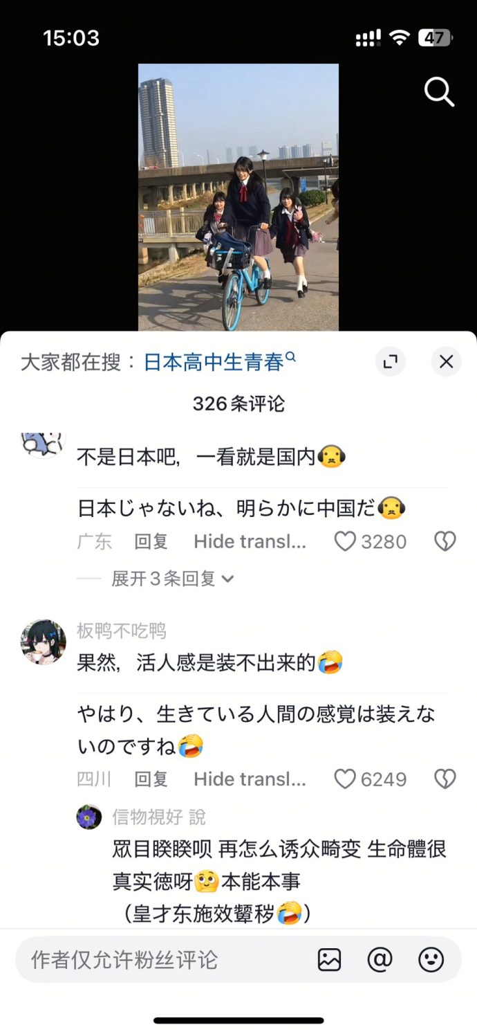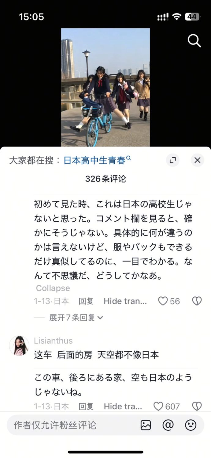 制服姿の女子学生たちが自転車で走り、何気ない日常を切り取った映像だが、中国の視聴者からは投稿直後から“ある違和感”を指摘する声が相次いだ。