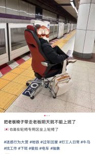 【中国SNS】中国人、日本の電車にオフィスチェアを持ち込み堂々と着席 車椅子スペース占拠
