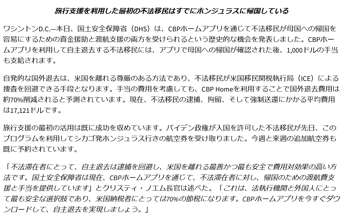 0 Screenshot 2025-05-06 at 12-26-17 国土安全保障省、自主退去者への歴史的な渡航支援と手当を発表 国土安全保障省 2025年05月06日14:17 | カテゴリ: Xで共有