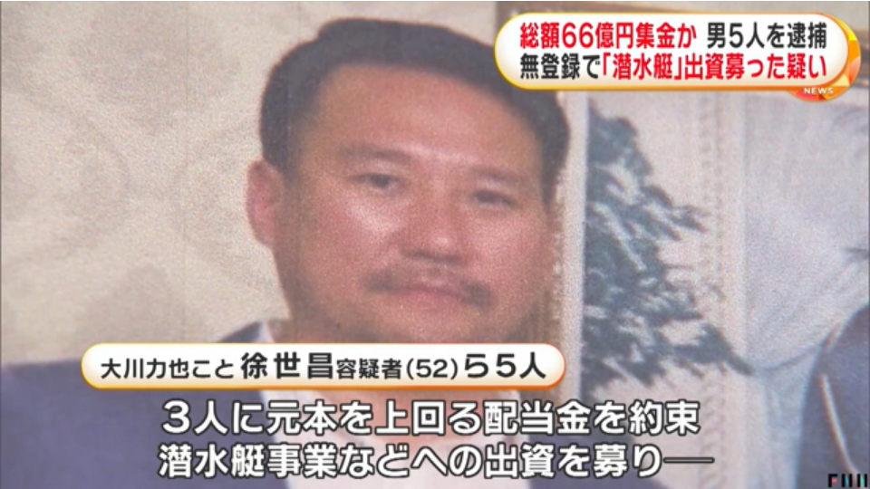 0 Screenshot 2025-06-05 at 18-33-59 【巨額】1万5000人から66億円集金か…無登録で「潜水艇」出資募った疑いなどで大川力也こと徐世昌容疑者(52)ら男5人逮捕(FNNプライムオンライン(フジテレビ系)) – Yahoo!ニュース 2025年06月05日18:35 | カテゴリ: Xで共有