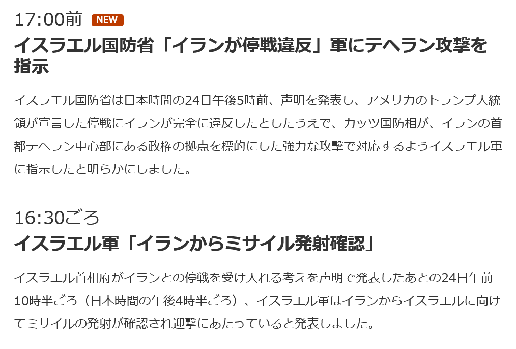 0 Screenshot 2025-06-24 at 17-45-40 【速報中】イスラエル「イランが停戦違反」軍に攻撃を指示 NHK トランプ大統領 2025年06月24日17:45 | カテゴリ: Xで共有