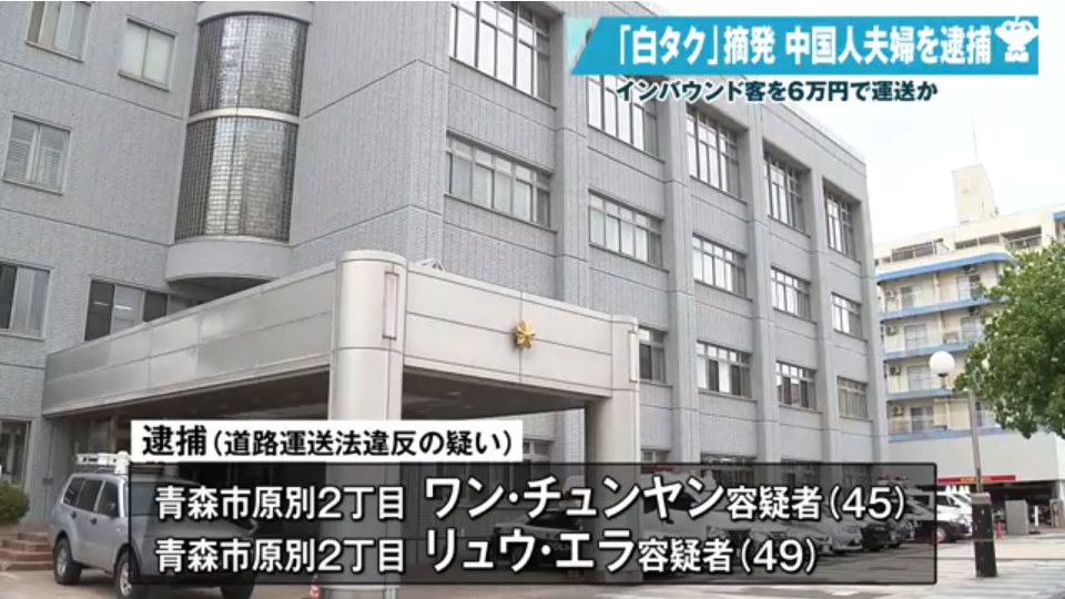 0 Screenshot 2025-07-09 at 17-25-28 「白タク行為」を働いていた中国人の夫婦が逮捕 外国人観光客を自家用車にのせて6万1000円の金を受け取った疑い(青森放送) – Yahoo!ニュース